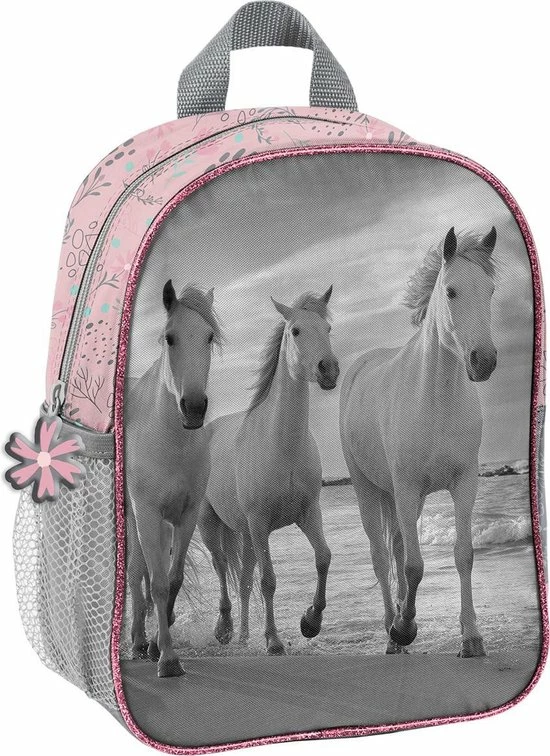 Animal Pictures Peuterrugzak, Paarden. Dit schattige rugzakje heeft een mooie afbeelding van drie paarden en is verder afgewerkt met leuke roze accenten. Geschikt voor kinderen tot ongeveer 4 jaar. Ideaal voor school, kinderopvang of een dagje weg. Een geweldig cadeau voor de echte paardenliefhebber!