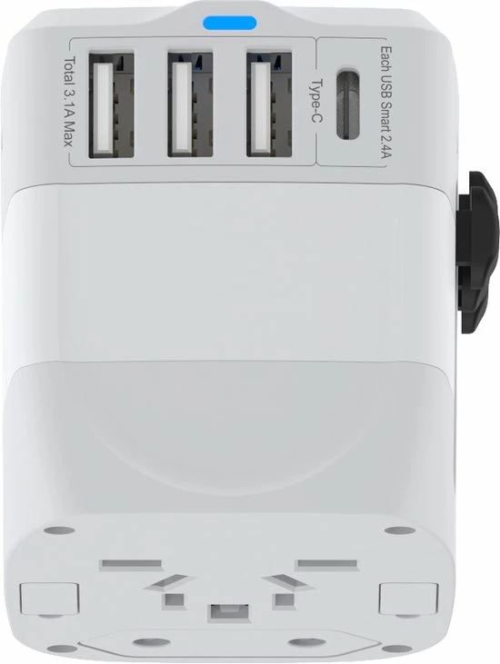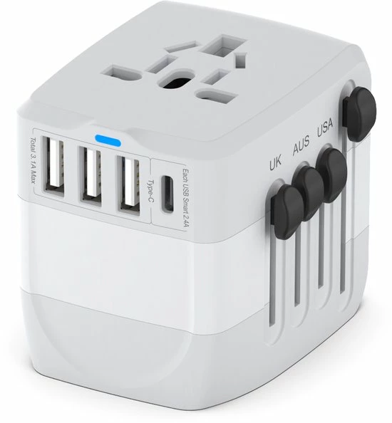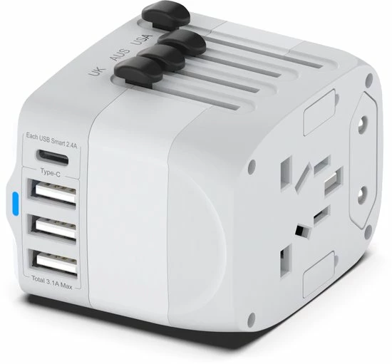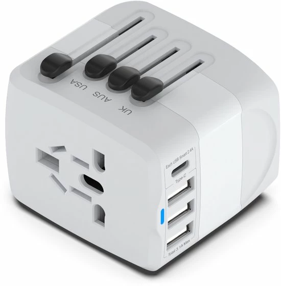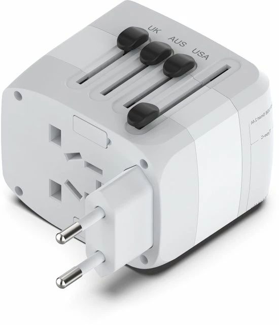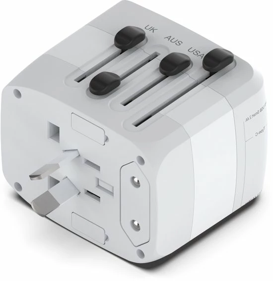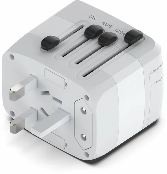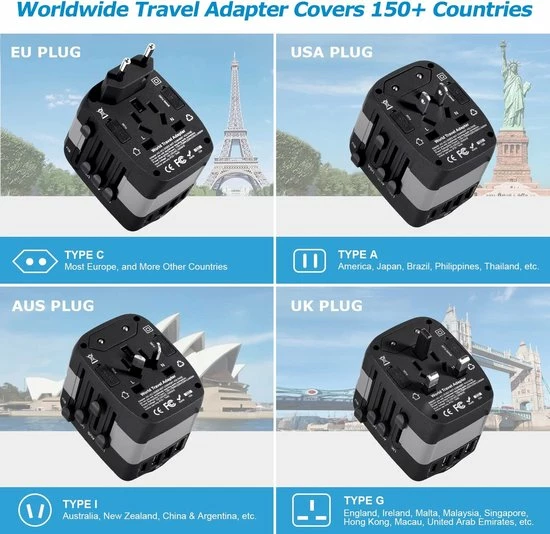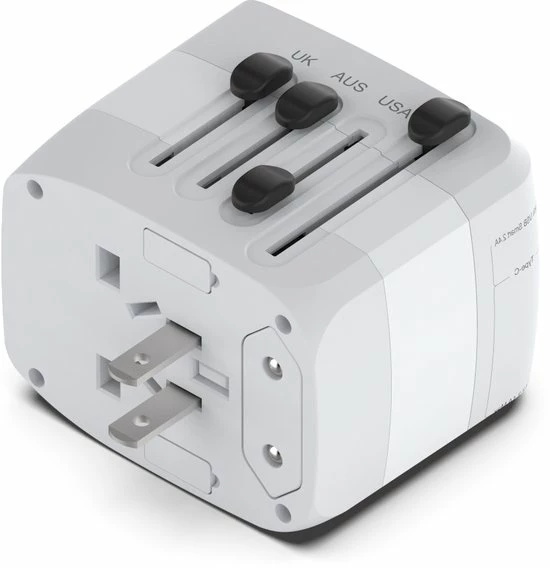Ter info: landen waar onze reisstekkeradapter dekt EU/Type C: de meeste Europese landen en andere; AU/Type I: Australiรซ, China, Nieuw-Zeeland en meer zoals Argentiniรซ, Fiji, de Salomonseilanden, Uruguay, enz. Type A: Braziliรซ, Colombia, Costa Rica, Cuba, Ecuador, Guam, Jamaica, Japan, Laos, Panama, Peru, Filippijnen, Puerto Rico, Thailand, enz. UK/TYPE G: Engeland, Cyprus, Malta, Maleisiรซ, Nigeria, Saoedi-Arabiรซ, Singapore, Sri Lanka, Tanzania, Verenigde Arabische Emiraten, Jemen, Zimbabwe, enz.