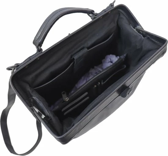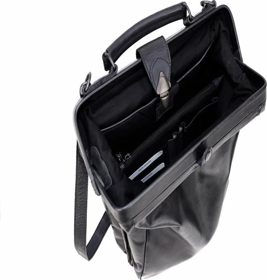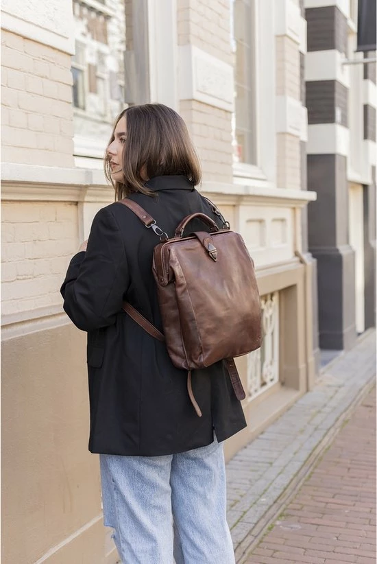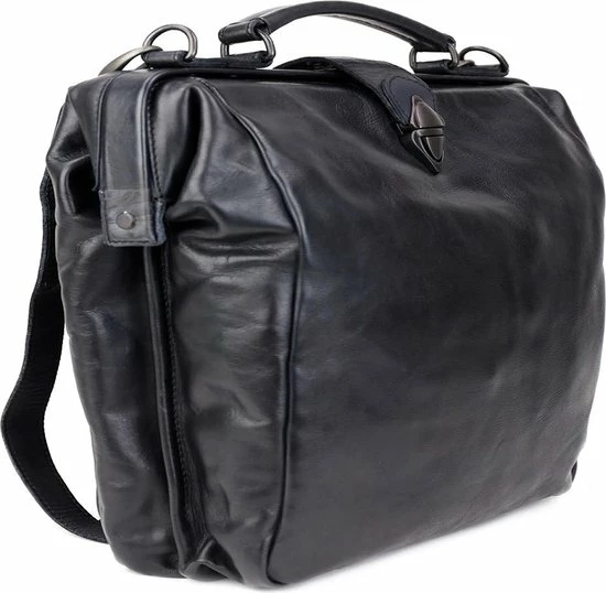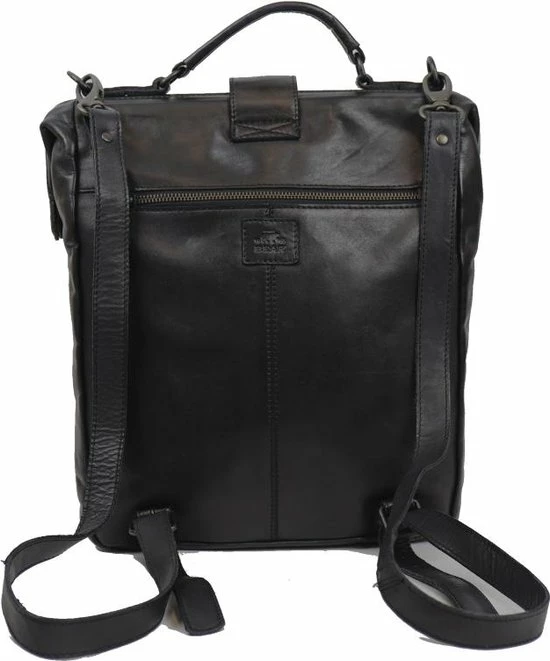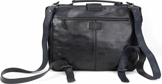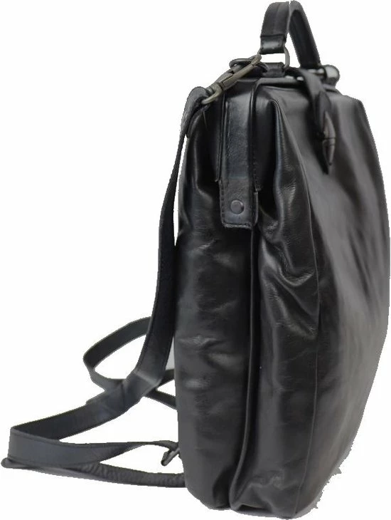 De Sheldon leren rugtas / dokterstas uit de Cow Lavato Collection van Bear Design is gemaakt van prachtig rundleer. Het ruime hoofdvak heeft een ingebouwde beugel zodat hij mooi open blijft staan. De tas is afsluitbaar middels een lip met schuif-/kliksluiting. In het hoofdvak zit een 2-vaks verdeling. Het tussenschot is tevens een ritsvak en op het tussenschot zit ook een organizer bestaande uit 2 steekvakjes, 3 sleufjes voor pasjes en 2 pennenlussen. Ook zit binnenin de tas een ritsvak en een gewatteerd laptopvak voor een 13,3″laptop van max. 25 x 33 cm. Op de achterzijde van de tas zit een ritsvak, handig voor items die je snel bij de hand wilt hebben. De tas is voorzien van twee afneembare lange schouderbanden waarmee je de tas als rugtas kunt dragen. De tas is ook als schoudertas te dragen en met het stevige handvat dat aan de bovenkant zit draag je hem ook comfortabel in de hand.