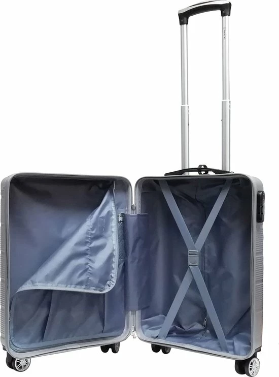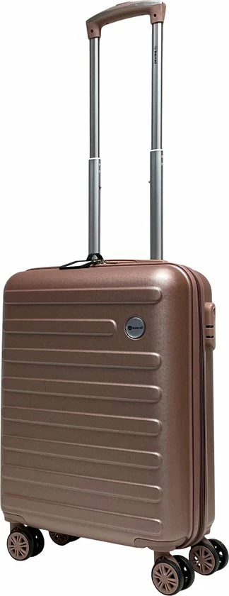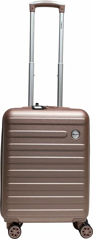 Hardschalen handbagage koffer van het merk Benzi. De koffer is voorzien van een ritssluiting rondom die op slot te zetten is middels een vast cijferslot op de zijkant van de koffer. Binnenin gevoerd, spanbanden en tussenschot met ritssluiting. Op het tussenschot zit een ritsvak en twee steekvakken voor het overzichtelijk opbergen van kleine reisaccessoires.
