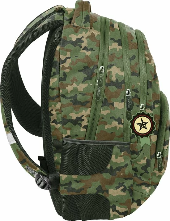 BeUniq Rugzak, Camouflage. Deze gave rugzak met een camouflage-thema is ideaal als een back-to-school cadeau. De leuke print en badges maken dit tasje helemaal af. De tas beschikt over maar liefst vier vakken met rits. Verder heeft de tas ook twee open zijvakken voor, bijvoorbeeld een drinkflesje. Comfortabel te dragen door de gepolsterde rug en schouderbanden. Een geweldig back-to-school item en een leuk cadeau om te geven of te krijgen.