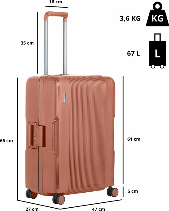 Een zorgvuldig samengestelde mix van hoogwaardige materialen. De naam zegt het al; De “Protector” kan tegen een serieus stootje door ultralicht polypropyleen materiaal. Voor een koffer met vaste kliksloten een echte lichtgewicht. Niet onbelangrijk voor je lange (wereld)-reis of stedentrip. Ritsen vormen een zwak beveiligingspunt op een koffer, dus als veiligheid een topprioriteit is voor u, dan ligt de keuze voor deze koffer voor de hand. Het geïntegreerde TSA-cijfercombinatieslot met twee vergrendelbare kliksloten reduceren de kans op inbraak tot een minimum.