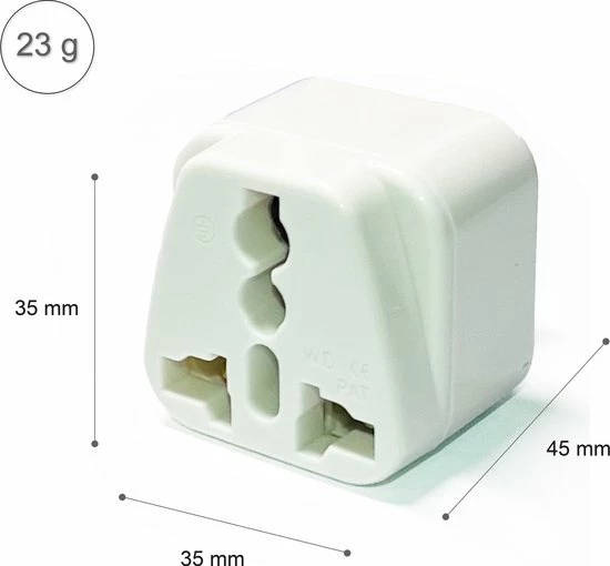 - Het stopcontactgedeelte van deze reisstekker is universeel. Door het ontwerp van dit paneel is het compatibel met een groot aantal stekkers. Daarom is het eenvoudig om onze apparaten op deze stekker aan te sluiten om ze in het reisland te gebruiken.