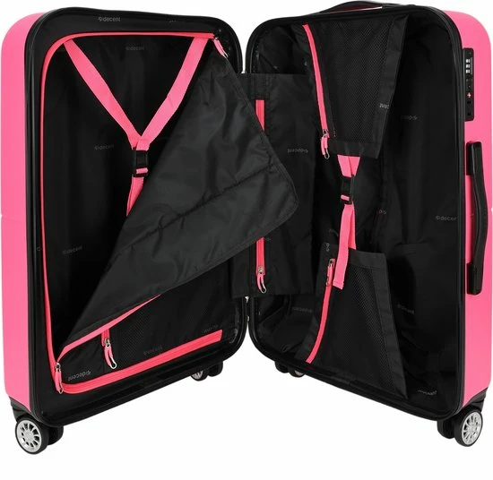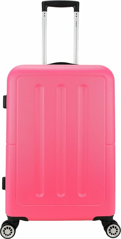 Middelgrote hardschalen ABS koffer. Koffer is voorzien van een rits rondom die op slot te zetten is middels een vast TSA slot op de zijkant van de koffer. Binnenin gevoerd en voorzien van meerdere insteek- en ritsvakken voor het overzichtelijk opbergen van uw bagage. Het 4-wiel systeem en de verstelbare trekstang bieden extra reiscomfort.