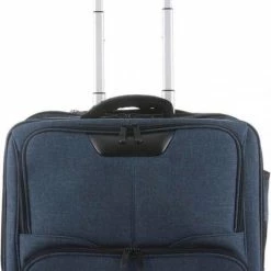 Elegante business trolley Dermata Business Laptop Trolley Canvas 3456CV Petrol, gemaakt van hoogwaardig canvas. De blauwe trolley beschikt over maar liefst 6 handige vakken. In het achterste vak kan een 17 inch laptop worden geplaatst. Dit beschermende laptopvak (40 x 29 x 5 cm) is uitneembaar en biedt optimale bescherming aan het apparaat. De middelste vakken dienen als opbergvak voor mappen en documenten. Voorin is er plaats voor kleine spullen zoals schrijfmaterialen, telefoon en reisdocumenten. Met geรฏntegreerd trolley systeem en wielen aan de onderkant. De laptop trolley kan ook gedragen worden aan het stevige handvat en is af te sluiten met diverse ritssluitingen. Wij zijn officiรซle Dermata dealer, dus u kunt natuurlijk rekenen op een volledige garantie.