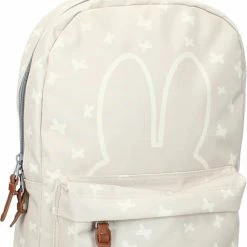 Deze rugzak is perfect voor de kleine avonturiers en fans van Nijntje. Deze tas is gemaakt van polyester, heeft een beige kleur en is volledig bedrukt met afbeeldingen van Nijntje. Het ruime hoofdvak is gemakkelijk te openen en te sluiten met twee ritsen en is groot genoeg voor een lunchbox, sippy cup, speelgoed en andere items. Daarnaast heeft de rugzak een voorvak met rits die ruimte biedt aan allerlei kleine spullen. De rugzak heeft twee schouderbanden die in lengte verstelbaar zijn.