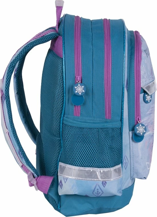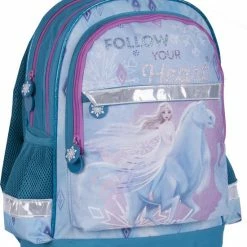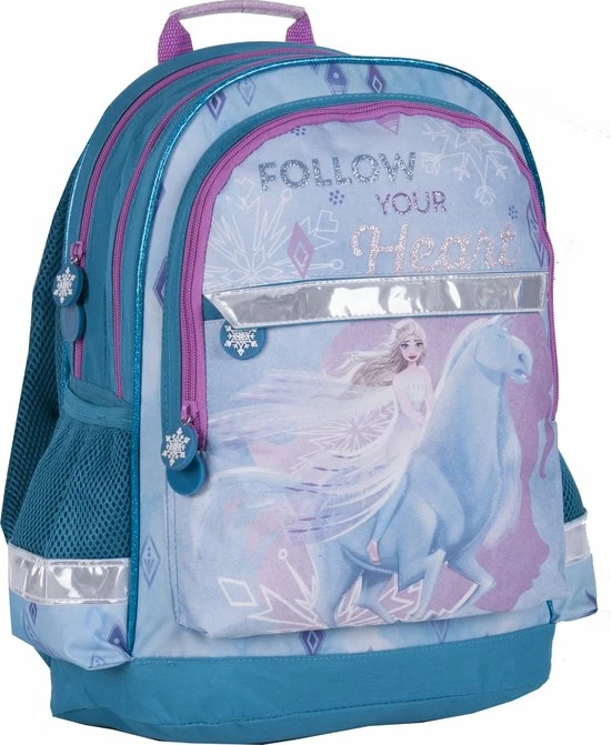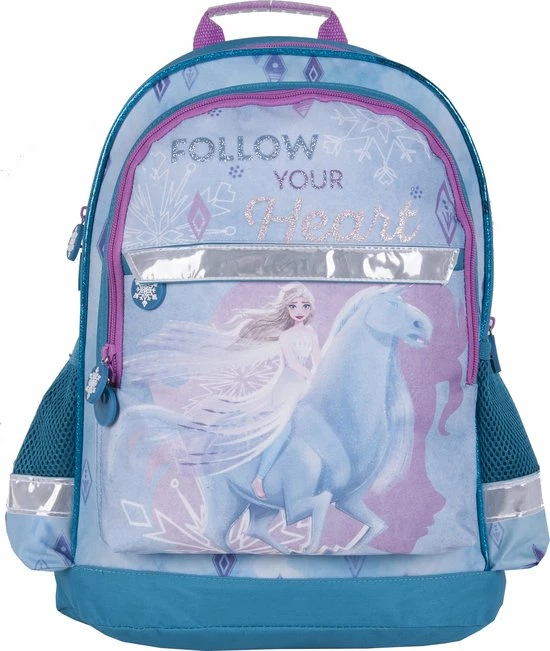 Disney Frozen Rugzak, Nokk. Superleuke rugzak van Frozen. Elsa en Nokk rijden het volgende avontuur tegemoet! Ook zo’n fan van de Frozen films? Dan mag deze mooie blauw met roze rugtas zeker niet ontbreken in je collectie! Een fijne, multifunctionele rugtas. Geschikt voor school, een dagje weg of sportactiviteiten. Voorzien van vier vakken met ritssluiting, waarbij je je spullen goed overzichtelijk kan houden. Door de gepolsterde en verstelbare schouderbanden ook nog eens comfortabel te dragen en een mooie afwerking, mede door de leuke hangertjes aan de ritsen. Kortom: een waanzinnig cadeau voor de Frozen-fan een fantastisch back-to-school item!