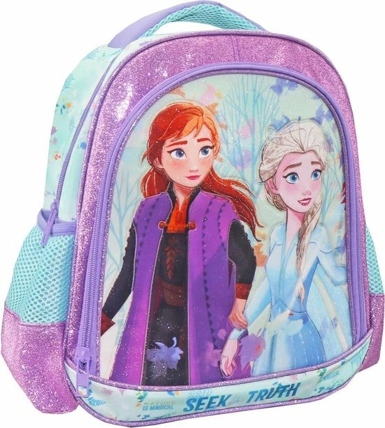 Disney Frozen Rugzak, Seek Truth. Anna en Elsa zijn onafscheidelijk in de Frozen film. En ook op deze gave rugtas. Door de glitters krijgt de rugzak een leuk effect. De tas is voorzien van 2 ruime vakken met rits en 2 zijvakken voor, bijvoorbeeld, een drinkfles. Welke Frozen-fan maak jij hier blij mee?