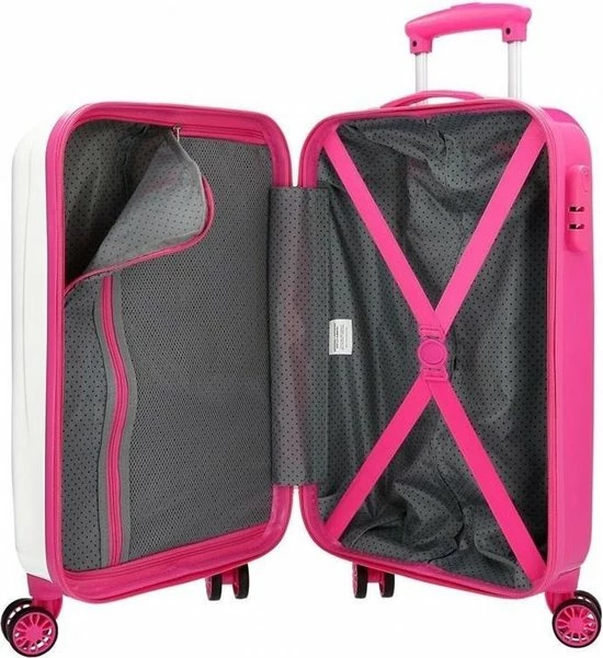 Deze vrolijke Disney koffer is perfect voor de echte Disney fans. Kids kunnen hun handbagage pakken met onder andere hun favoriete speelgoed en wegrijden! Het koffertje is te sluiten met een cijferslot. Gemakkelijk te gebruiken door middel van de vier soepele spinning wieltjes en de verstelbare trekstang. Aan de gevoerde binnenkant zitten inpakriemen en een afsluitbaar compartiment.