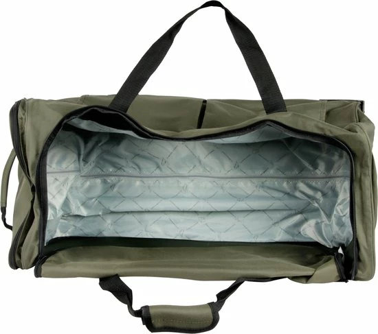 De tas heeft een volledig verstevigde bodemplaat met kunststof beschermstukken op de bodem en de zijkant, waardoor de tas zeer stevig is en ook op de zijkant rechtop kan worden gezet. De reistas heeft twee wielen en een uitschuifbare trekstang.