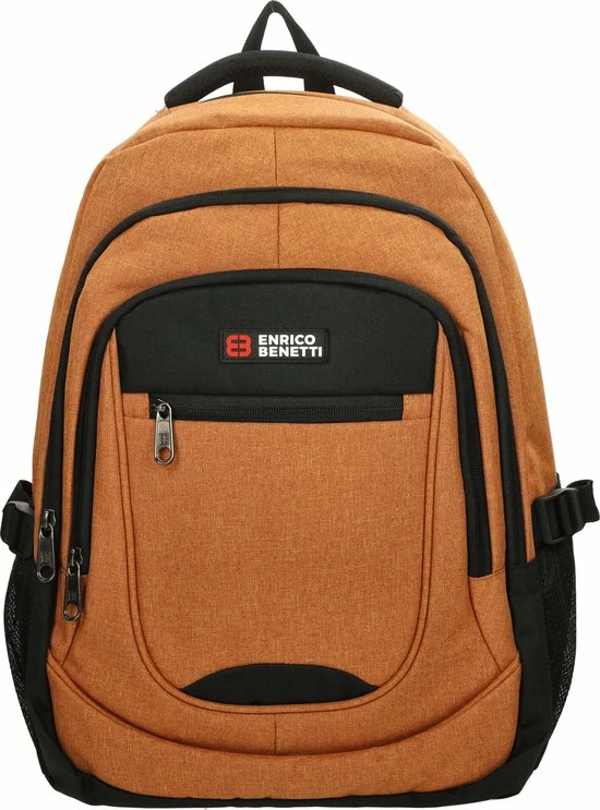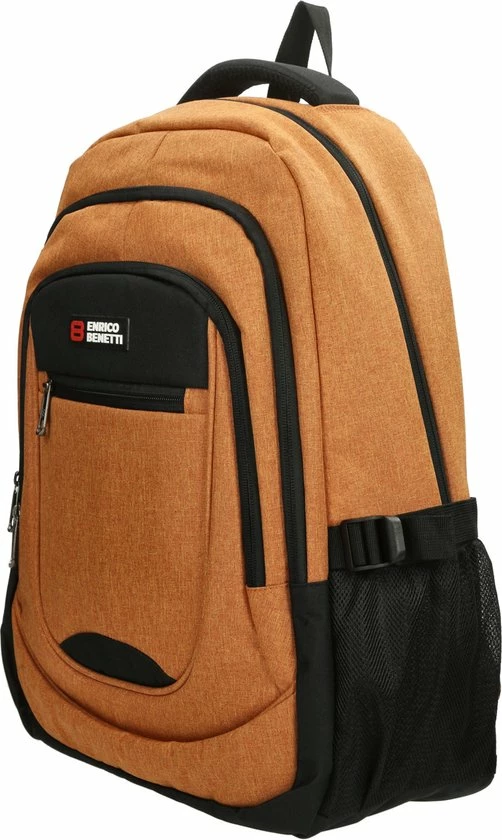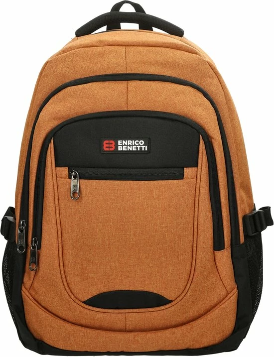Dit is de sportieve en ruime laptoprugzak 17β uit de Hamburg serie van Enrico Benetti. Deze rugzak heeft heel veel opbergmogelijkheden, zoals in het voorvakje en ruime voorvak met organiser. Hierin berg je kleine spulletjes op zoals pennen, sleutels etc. Deze rugzak heeft twee hoofdvakken, een mesh binnenvak met ritssluiting en een 17β gewatteerd laptopvak. De tas heeft twee elastische mesh zijvakken waarin je bijvoorbeeld een drinkfles opbergt. Zo heb je die altijd gemakkelijk binnen handbereik! In het rugpaneel zit een veiligheidsritsvak waarin je extra veilig je waardevolle spullen opbergt. Ook heeft de tas een trolleyband waarmee je de tas over de trekstang van je koffer schuift en daarmee bovenop je koffer gemakkelijk met je meeneemt! Het rugpaneel en de schouderbanden zijn verstevigd en voorzien van luchtdoorlatend foam, voor extra luchtig draagcomfort. Uiteraard zijn de schouderbanden verstelbaar naar jouw wens. Deze ruime tas wat compacter maken, doe je door de twee straps aan de zijkant wat aan te trekken.