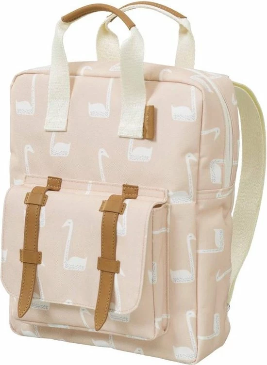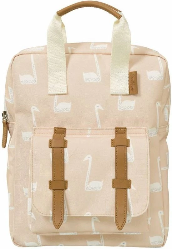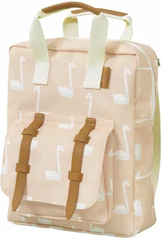Rugzakje Zwaan | Fresk Merk: Fresk Een toffe en praktische rugzak komt altijd wel van pas, zowel tijdens de zomervakantie als de schoolperiode. Deze mooie rugzak van Fresk kan perfect dienen als schooltas voor kleutertjes en kleine kinderen, alsook als sportzak of zwemtas! Met zijn klassevolle kleur en lederen afwerking, is dit een must-have voor ieder kind met stijl! Het rugzakje bestaat uit ©©n groot vak met binnenin een klein zakje voor de minder grote spullen. Vooraan is eveneens een zakje om bijvoorbeeld schrijfgerei in weg te stoppen. Een etiket binnenin om alle gegevens van uzelf en uw kindje op te schrijven, zorgen ervoor dat dit de perfecte schooltas is voor uw lieveling! KENMERKEN van de Fresk rugzak zwaan * Kleur: lichtoranje met witte print van zwanen * Afmetingen: 32×23 cm * Leeftijd: vanaf 2 jaar * Materiaal: 100% gerecycleerde pet flessen * Aanpasbare schouderriempjes Fresk is Scandinavisch voor fris, toch is het een Nederlands merk dat Hollands design moeiteloos match met Scandinavische kwaliteit en stijl. Met heel wat liefde maken ze vrolijke en kleurrijke baby-essentiels en nu ook een leuke, nieuwe tassencollectie.