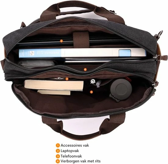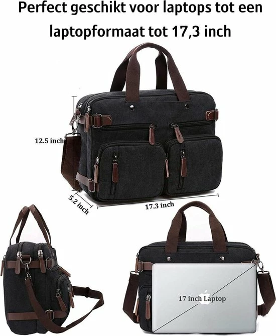 Opzoek naar een fijne laptoptas die comfortabel en compact en stevig is? En Kun je niet kiezen tussen een rugtas of schoudertas voor jou laptop? dan is deze 3- in-1 laptoptas van Jeusin ideaal, Deze tas kan als schoudertas worden gedragen en als rugtas worden gedragen en de tas is ook voorzien met 2 handvatten je kan de tas ook als handtas dragen, In deze tas past een laptop maat tot 17,3-inch, Het is een volledige waterdichte tas waardoor jou laptop en andere spullen volledig goed veilig zijn tegen water.