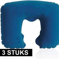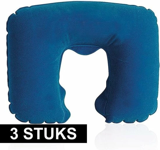 3x Opblaasbare nekkussens donkerblauw voor bijvoorbeeld in de auto, trein of vliegtuig. Materiaal: microfiber. Formaat nekkussentjes: 43 x 26,5 cm. U ontvangt 3 stuks. Opblaasbare nekkussens/reiskussens.