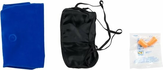 Complete reissset bestaande uit: nek kussen, slaapmasker & oordopjes.