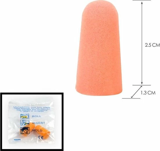 Afmetingen Oordopjes: 1.3 x 1.3 x 2.5 Cm. ( Lengte x Breedte x Hoogte )
