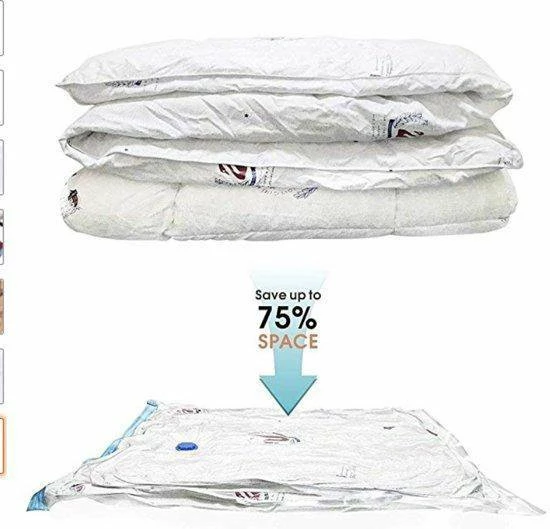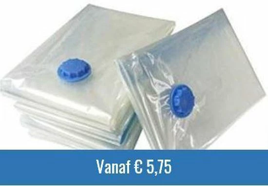 Met deze vacuΓΌm opbergzakken creΓ«ert u in een mum van tijd een zee van ruimte in uw kasten, opbergruimtes of koffer. Uw kleding, dekens en jassen opruimen? Met deze unieke set vacuΓΌm opbergzakken verdrievoudigt u uw opslagruimte. Bovendien zijn de opbergzakken luchtdicht, waterdicht en herbruikbaar. De inhoud wordt dus effectief samengeperst, optimaal beschermd en de spullen blijven keurig georganiseerd op hun plek.