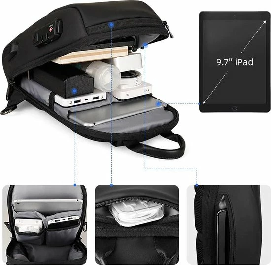 Begroting π Merkloos Vaderdagcadeau – Rug/Schouder Veiligheidstas – Met TSA-lock – Laptop Tas – Mini Bastion – Anti Diefstal – Zwart π