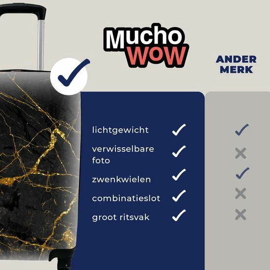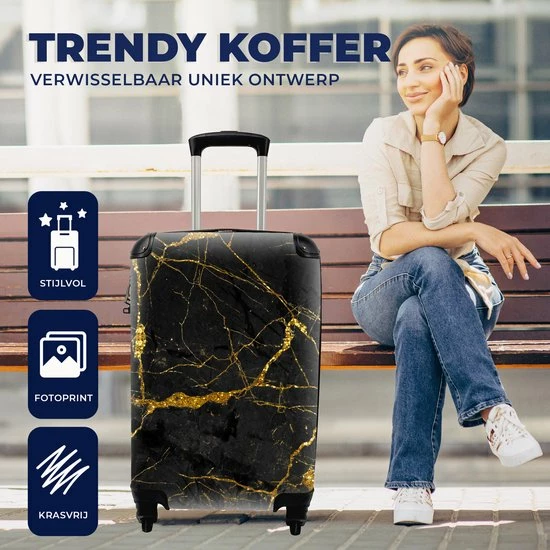 Trolley – Marmer – Goud – Zwart – Marmerlook – Luxe – Glitter – Koffer handbagage
