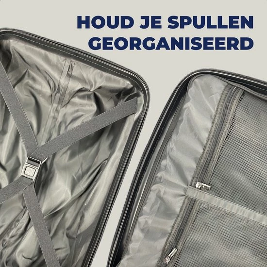 De koffer beschikt over een binnenvoering die is voorzien van gekruiste banden die jouw bagage georganiseerd bij elkaar houden. Daarnaast heeft het een extra groot ritsvak die de mogelijkheid biedt om een reisgids of boekje op te bergen zonder alle vakken te hoeven openen.