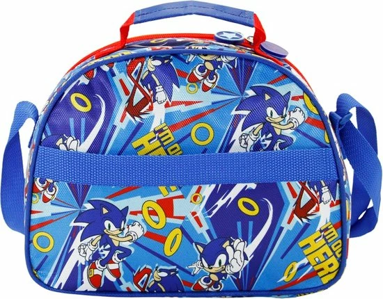 Op de voorkant van schoudertas vind je de blauwe snelheidsduivel Sonic The Hedgehog.