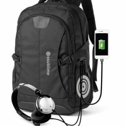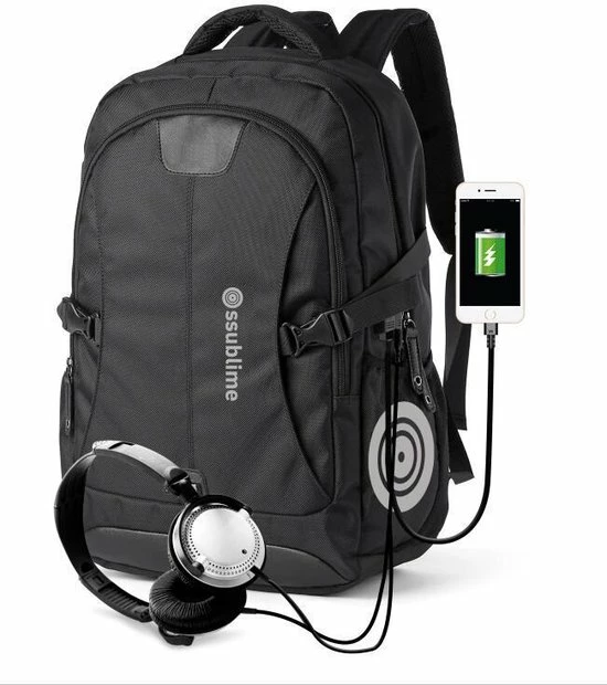 Deze rugzak is voorzien van een USB-oplaadstekker en een oortelefoonopening waarmee u niet alleen uw Smartwatch, iPad of tablet kunt opladen, maar waarmee u ook tijdens het lopen of rijden naar nummers en muziek kunt luisteren.