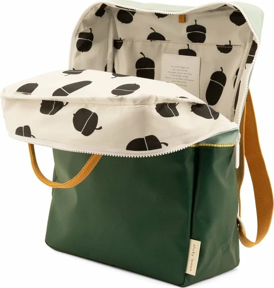De rugtas heeft aan de binnenzijde een elastische flessenhouder en binnenvak welk sluit door middel van klittenband. Het hoofdcompartiment van de Sticky Lemon rugzak sluit door middel van een YKK ritssluiting. De rugzak heeft verstelbare schouderriemen en is daarmee naar wens af te stellen. Je kunt de rugzak van Sticky Lemon niet alleen op de rug dragen, maar ook in de hand door middel van het handvat aan de bovenzijde van de tas. De handvaten zijn aan elkaar te bevestigen.