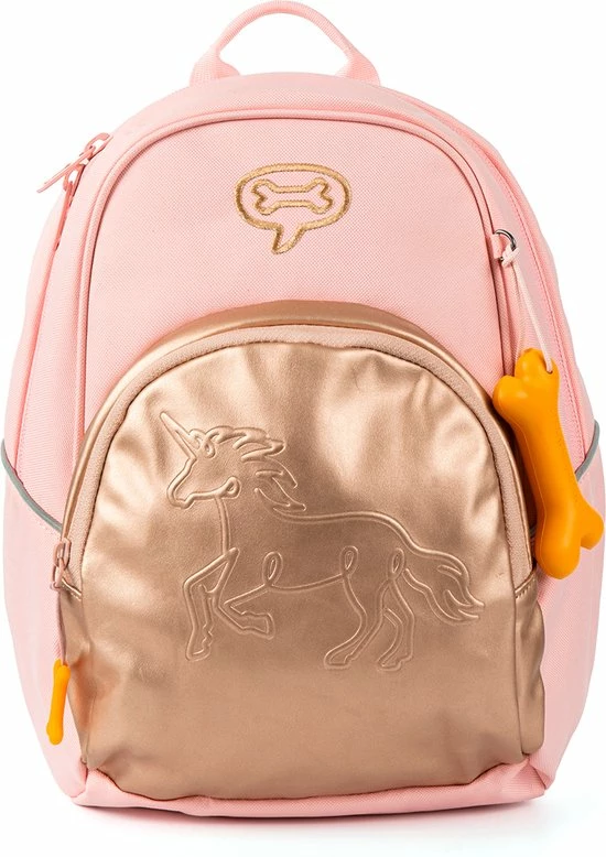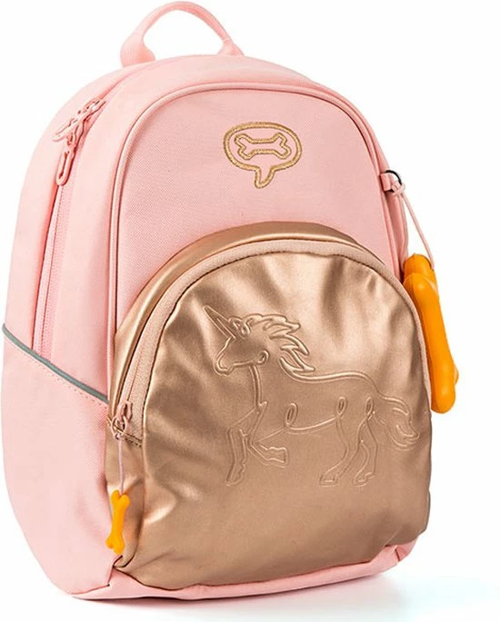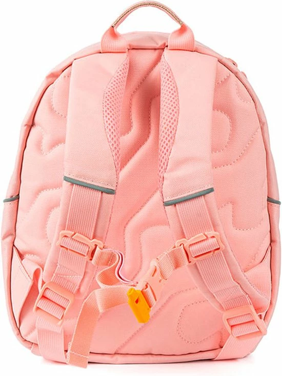 Een handige kleuter rugzak, voorzien van een ruim compartiment waar spulletjes allerlei in passen en een apart zakje vooraan voor kleine benodigdheden. Een subtiele reflecterende band zorgt voor extra veiligheid onderweg. Ideaal voor de kleuterschool en/of dag uitstappen.