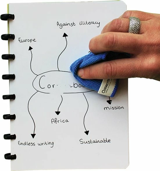 Wij willen 1 miljoen kinderen van uitwisbaar schrijfmateriaal voorzien. Waarom brengen we dan niet een van de meest typerende educatieve producten op de markt?