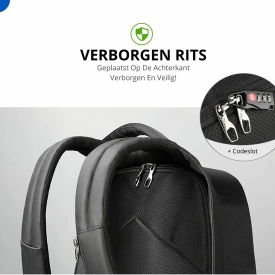 - Verborgen Rits: Doordat de rits op de achterkant is geplaatst kan geen enkel persoon jou ongemerkt beroven! Ook wordt er een slot meegeleverd voor extra zekerheid.