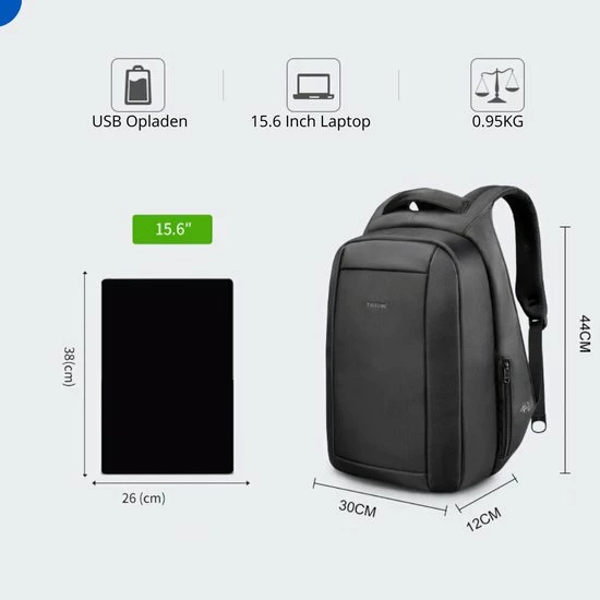 - Slimme Indeling: Wanneer je de rugzak opent zijn er tal van vakken. Een vak voor je tablet, laptop, mobiel, pennen, toetsenbord en nog tal van andere vakken! (zie afbeelding)