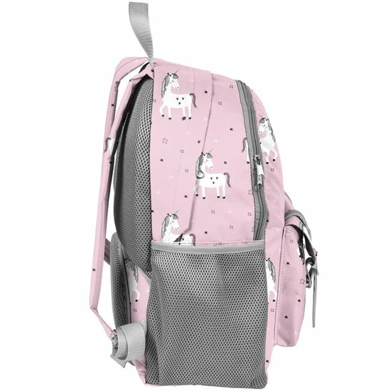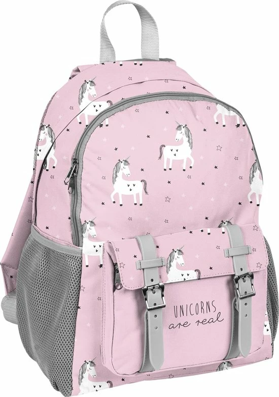 Unicorn Rugzak. Deze rugzak heeft een leuke print en kan met gemak al jouw schoolspullen dragen. De rugzak heeft 2 vakken met ritssluiting en 2 zijvakken. Ga goed voorbereid naar school met deze rugzak!