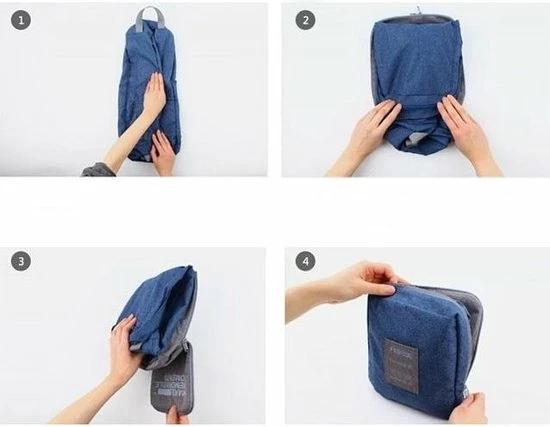 Makkelijk opvouwbaar tot een klein dichtgeritst pakketje van 20 x 20 cm.